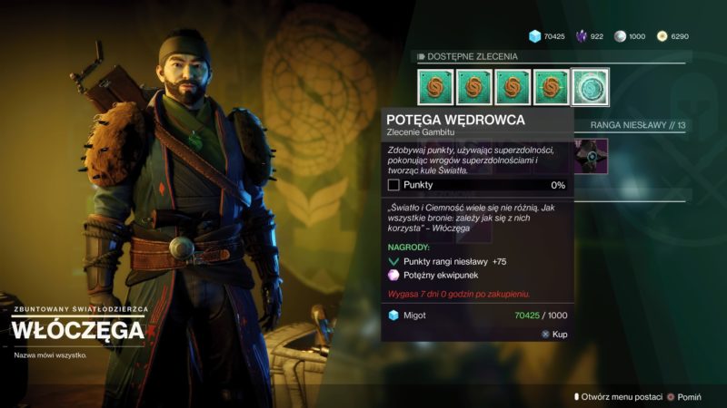 - Potęga Wędrowca, specjalne zlecenie od Włóczęgi – pokonuj wrogów i graczy super-zdolnością w Gambicie