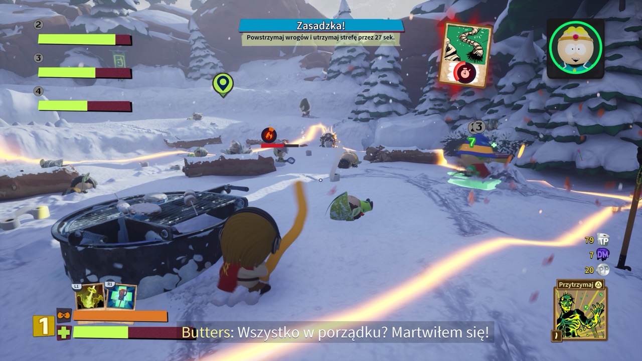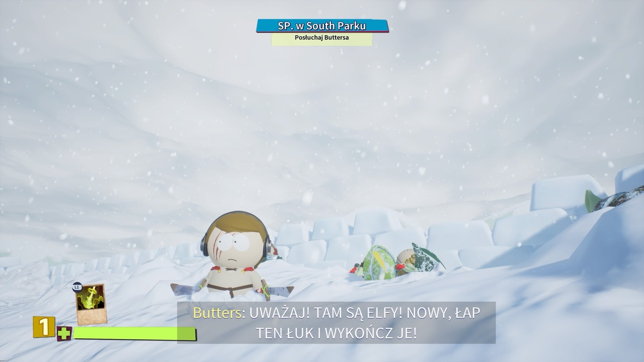 Żarty, czarny humor to coś, co fani serialu kochają i znajdą tutaj go sporo. Oczywiście Snow Day nie jest grą nastawioną na fabułę, więc przerywników jest mniej niż w Stick of Truth czy Fractured but Whole. Nie znajdziemy tu też dodatkowych znajdziek czy pobocznych misji, które nawiązywać miałyby do jakiegoś starego odcinka serii.
