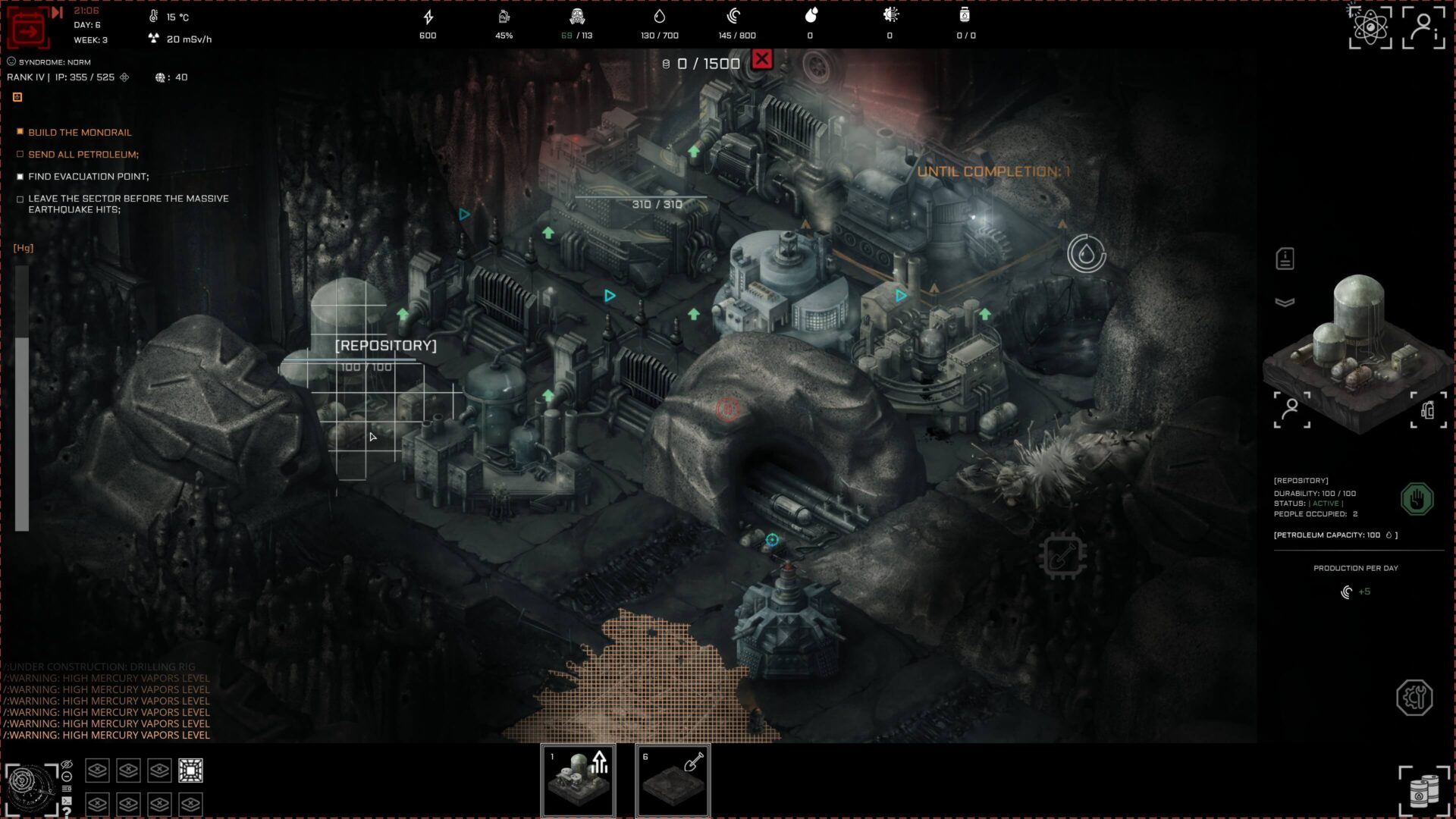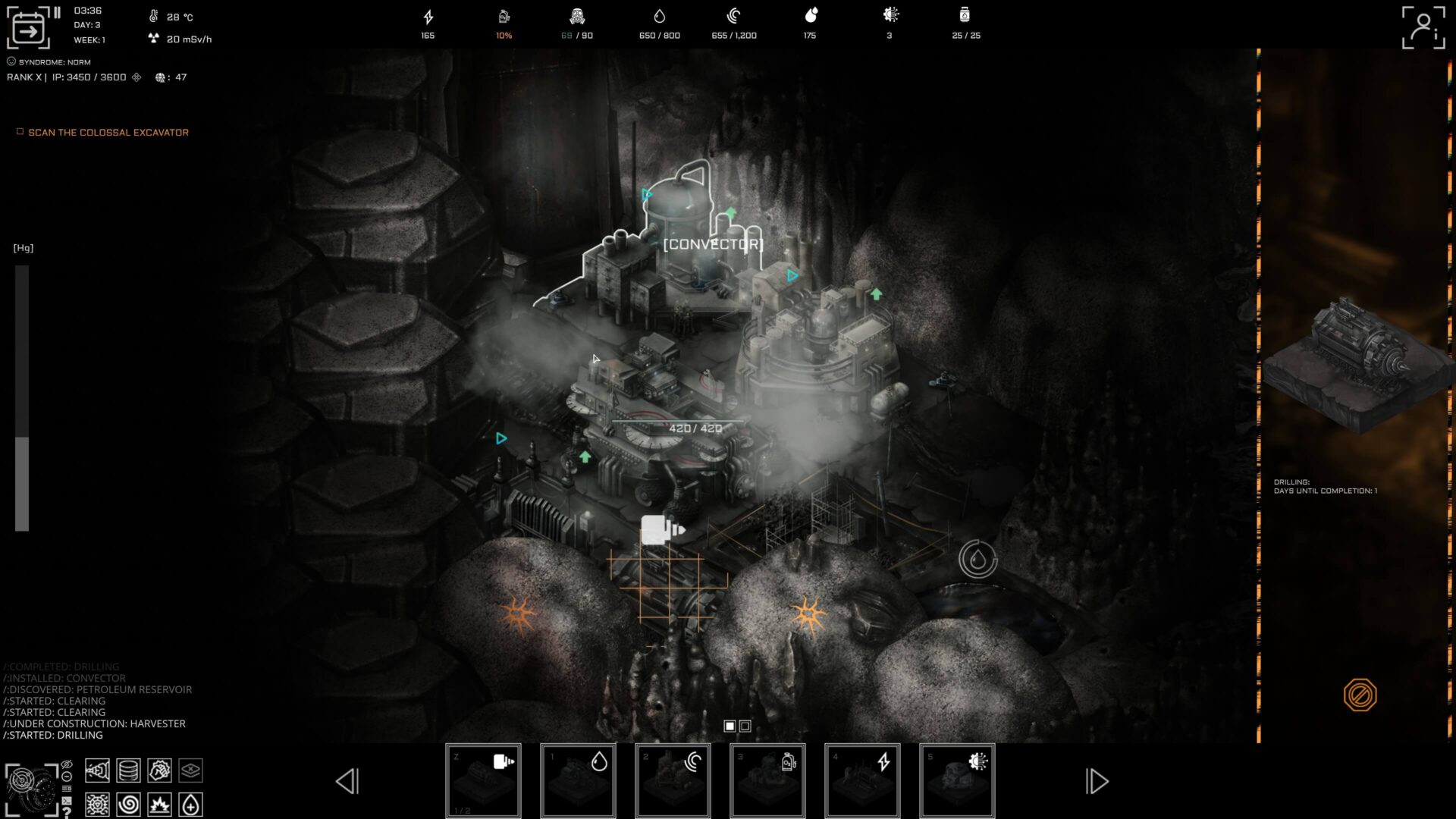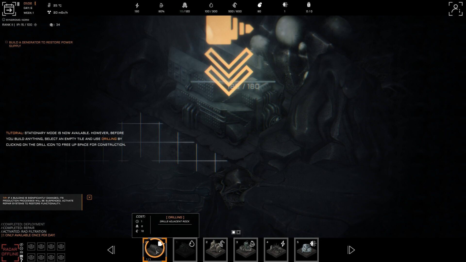Nad wszystkimi naszymi akcjami czuwać będą oczywiście wskaźniki z informacjami o otoczeniu i stanie naszej bazy. Wiecie, nie zbudujemy nowego generatora, jeśli nie mamy paliwa, a wiertło zawsze potrzebować będzie wolnych ludzi do pracy.